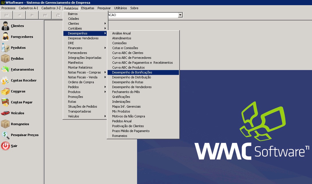 O usuário grava um “pedido” de bonificação, mas não é faturado, nem no WMC Mobile nem no gestão WMC. Logo, esta bonificação não aparecerá neste relatório. Se você deseja um relatório que mostre toda da bonificação faturada, este é o relatório certo. Mas se você não fatura alguns pedidos de bonificação, então este relatório não serve.