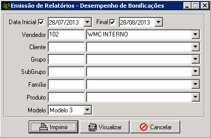 – Grupo/Subgrupo/Família: Consulte as bonificações emitidas de um grupo de produtos;
