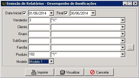 > Preciso de um relatório que me mostre quanto o vendedor “X” bonificou do produto “Y” no mês de Junho/2014:
