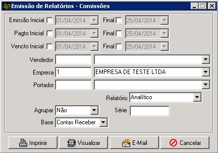Abaixo podemos ver a tela de filtragem (Form) que permite realizar todas as consultas referentes à comissionamento: