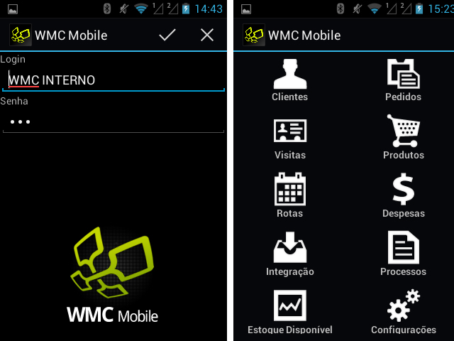 Após estas configurações mínimas, o usuário do WMC Mobile poderá abrir o sistema no Android: