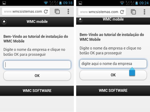 3) Será direcionado ao Tutorial de Instalação do WMC Mobile. Após digitar o nome da empresa, clicar em ok, o download do aplicativo ProjetoAndroid.apk será iniciado: