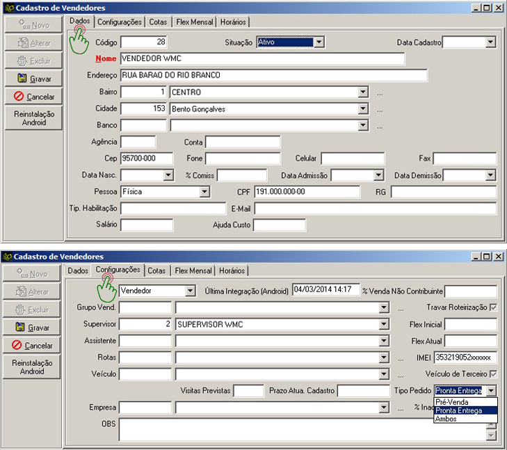 No que diz respeito ao Gestão WMC, para utilizar o Android basta cadastrar um novo vendedor: