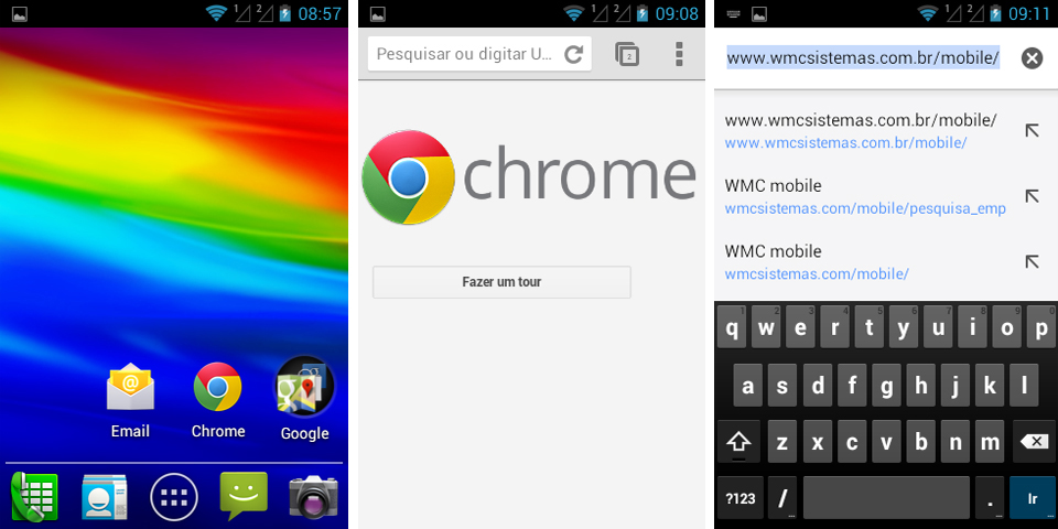 2) Localize o navegador de internet do aparelho e entre no site da WMC (digite na barra de endereços: www.wmcsistemas.com.br/mobile/);