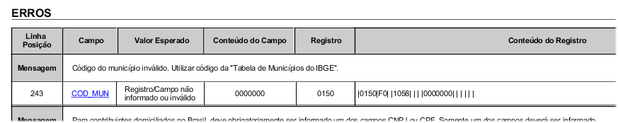Registro/Campo Não Informado ou Inválido - Duplicidade